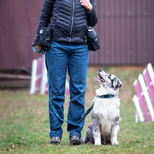 Na večnamenski pas je možno hitro in enostavno pritrditi vse torbice iz kolekcije Aktivno s psom: torbico za priboljške, torbico za pasjo plastenko,