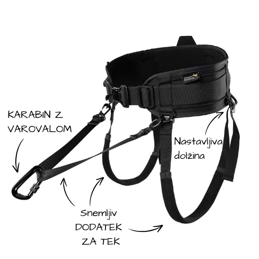 - Primeren je celo za tek s psom (Canicross) – ob uporabi Conor's Adventure dodatka za tek.