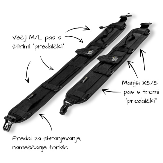 Na voljo sta dve velikosti večnamenskega pasu – XS/S in M/L. Če ti velikost ustreza, priporočamo izbiro večjega pasu (M/L),